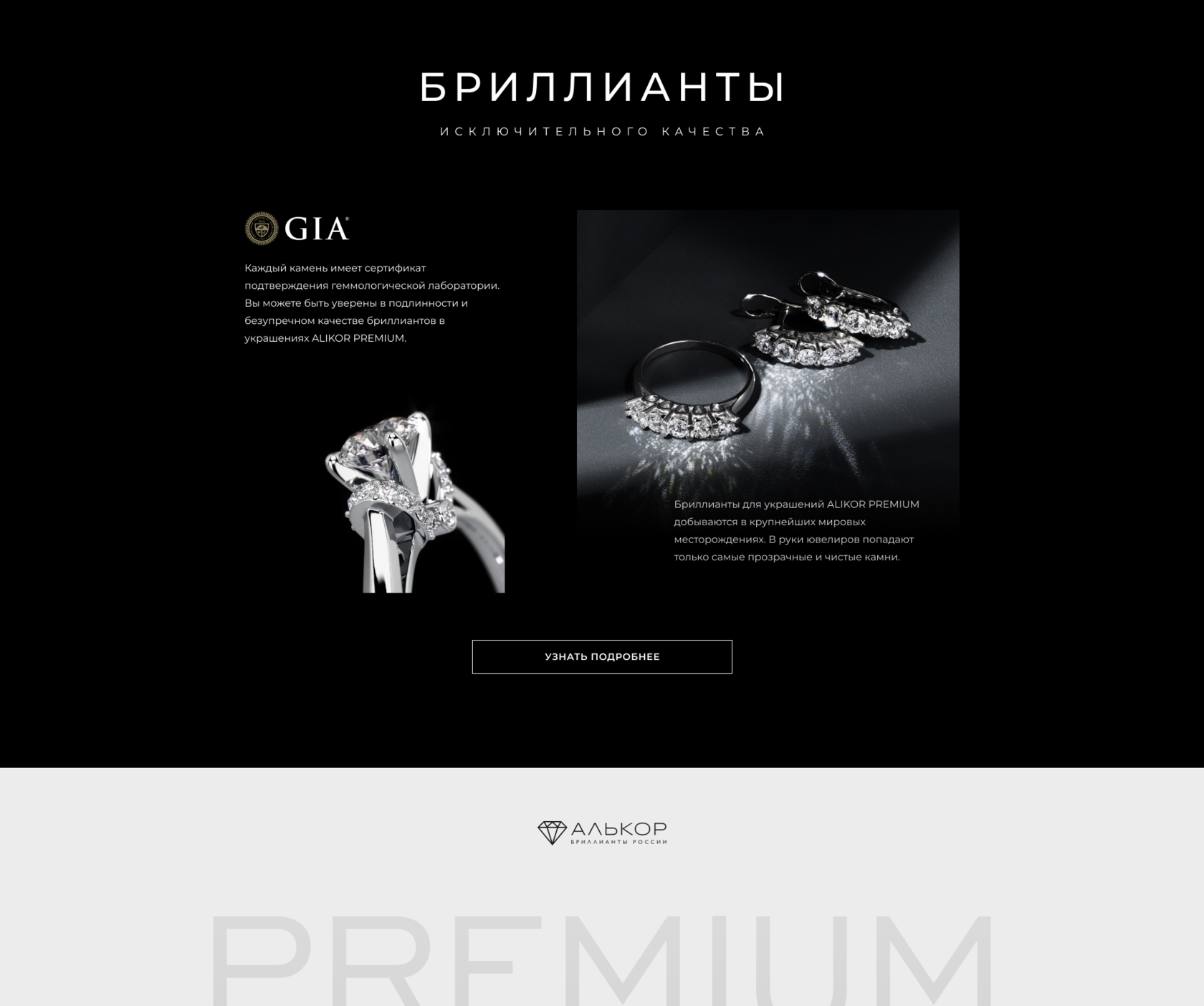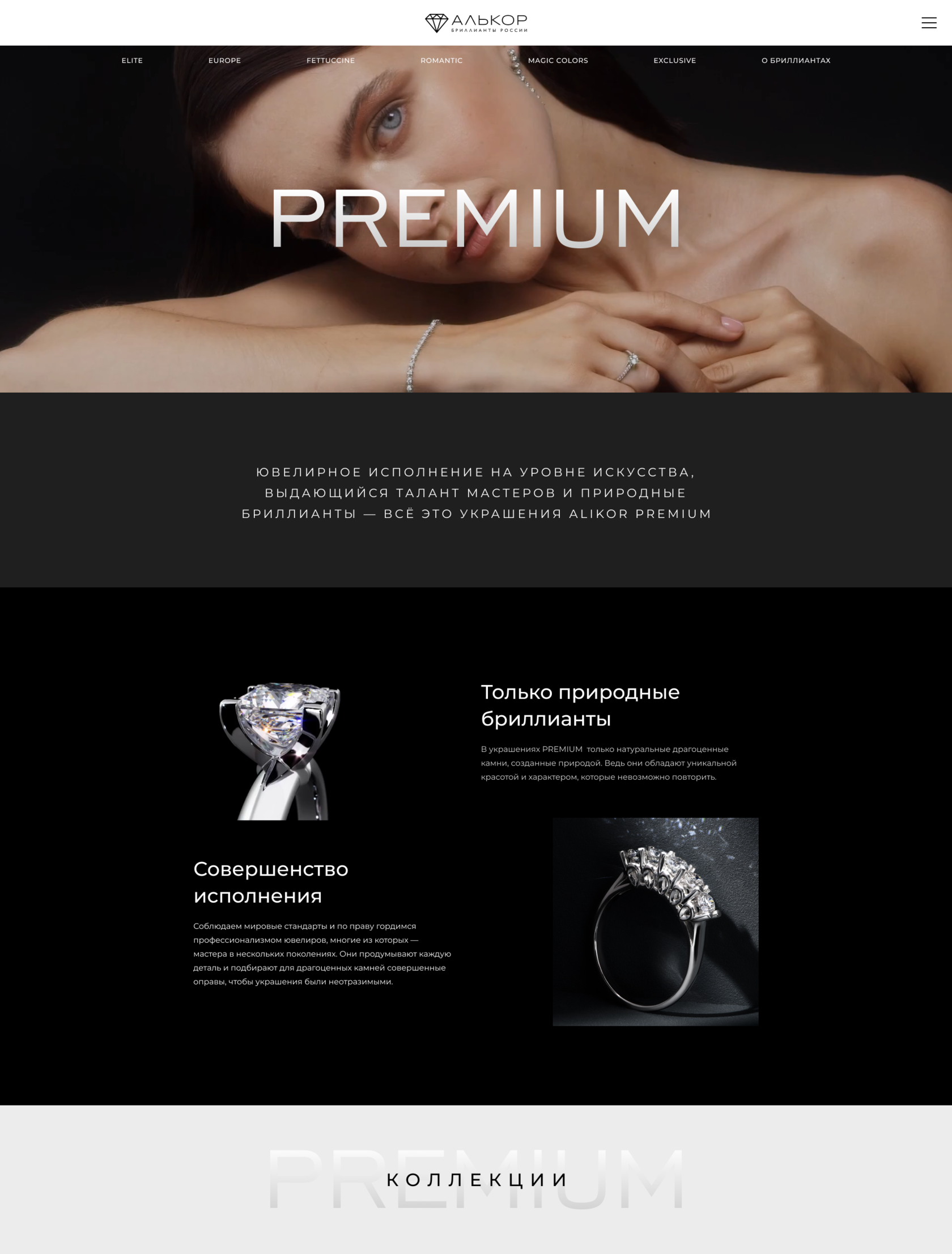 Тексты на сайт для линейки украшений PREMIUM от костромской ювелирной фабрики «АЛЬКОР»
