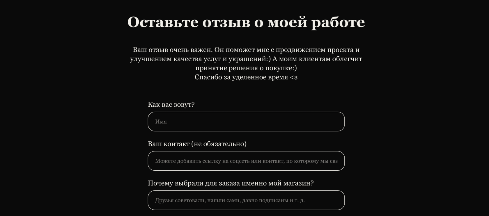Страница для отзывов для Darth Disar — ювелирный магазин