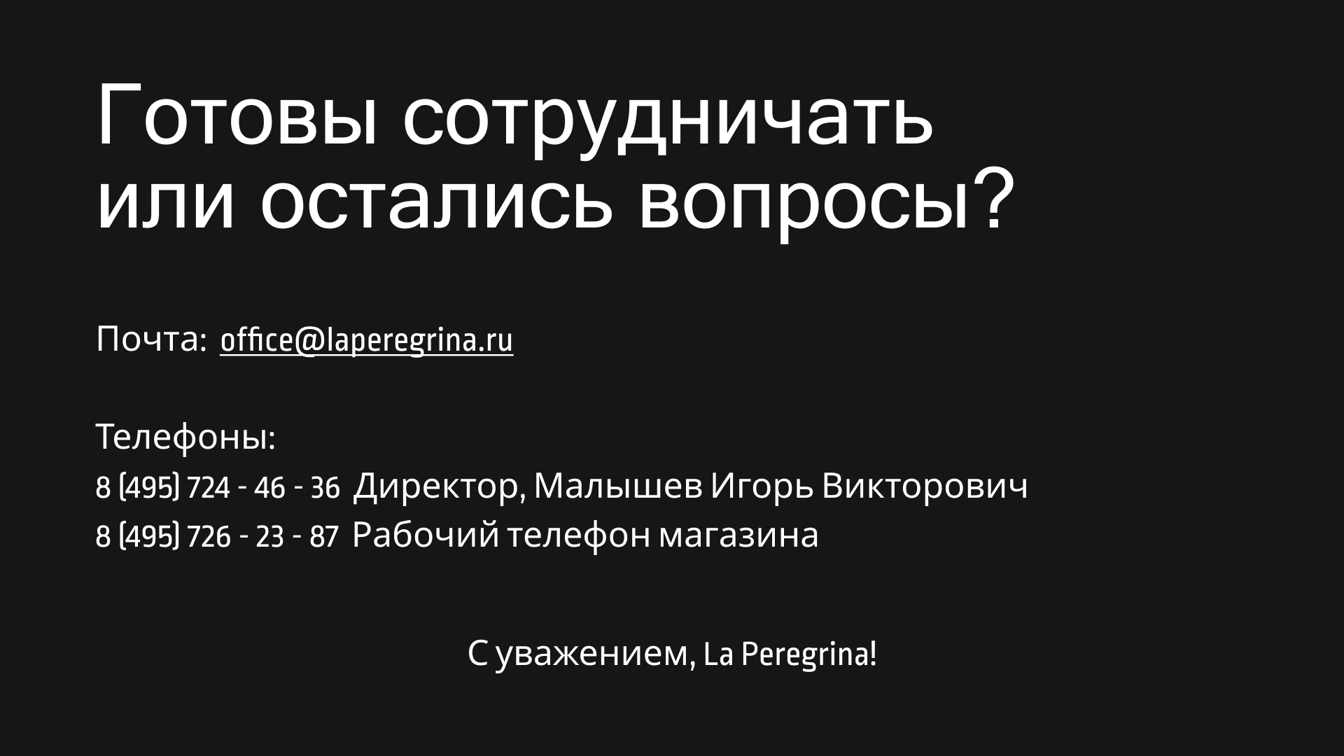 Коммерческое предложение для La Peregrina
